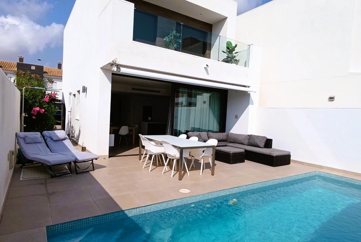 Welcome to this fresh and modern house in Santiago de la Ribera, just 1000 metres from the sea and close to