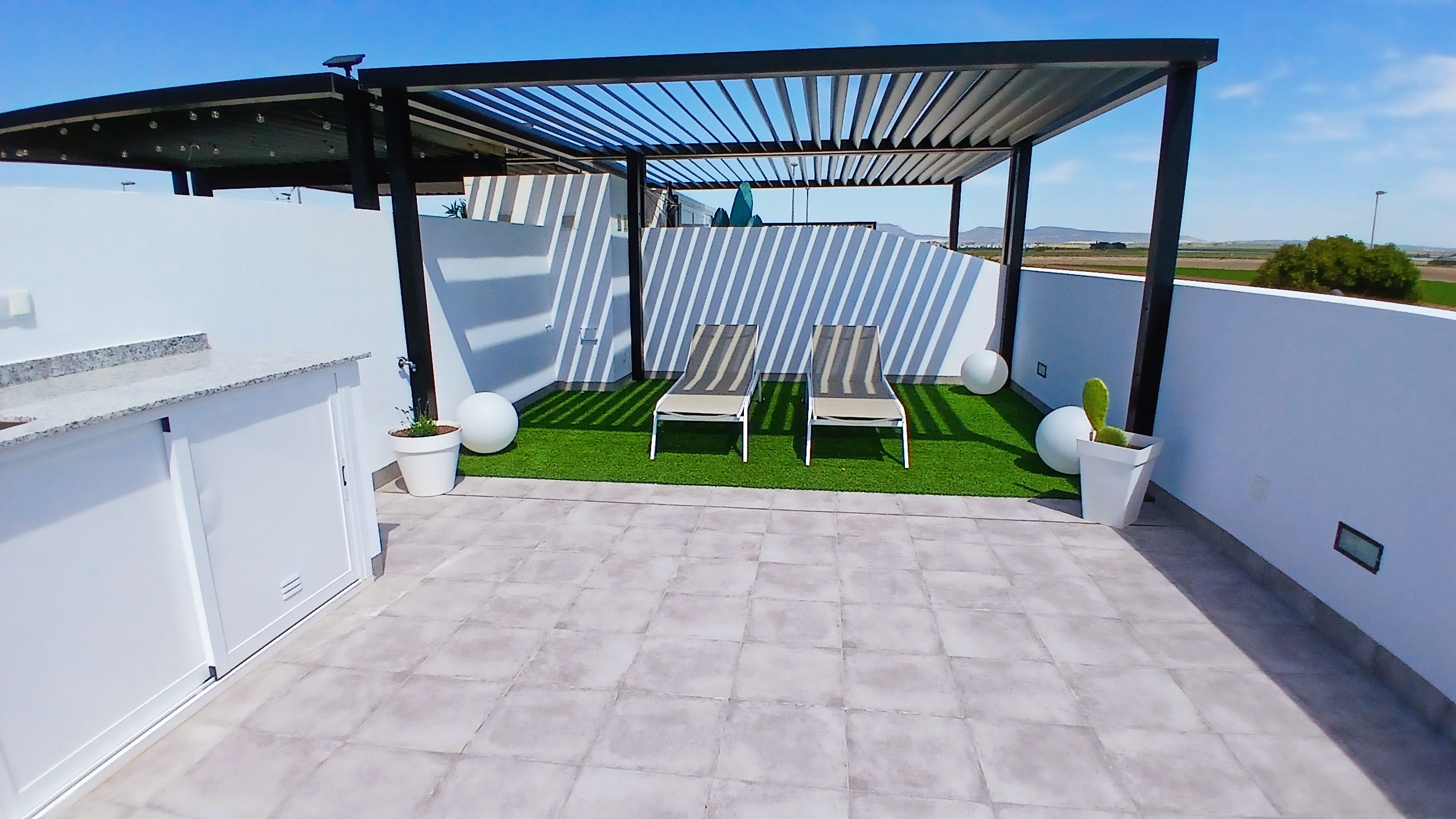 – Roof terrace with pergola and outdoor kitchen