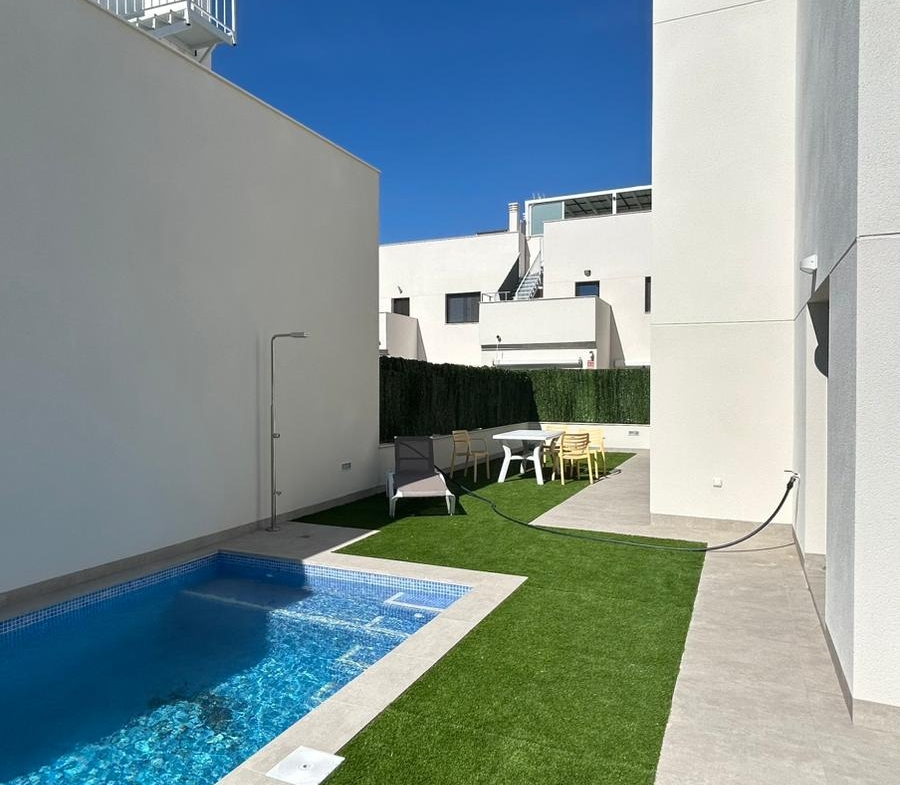 We are delighted to offer the last remaining villa on this delightful development * luxurious complex of 5 properties (3 townhouses and 2 villas) with private swimming pool, gated garage, interior patio, solarium with Summer kitchen and pre-installation for electric vehicle charging.