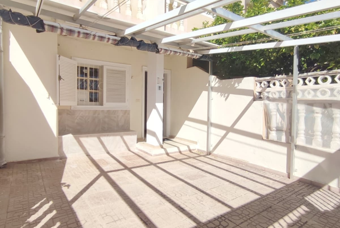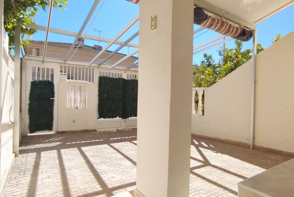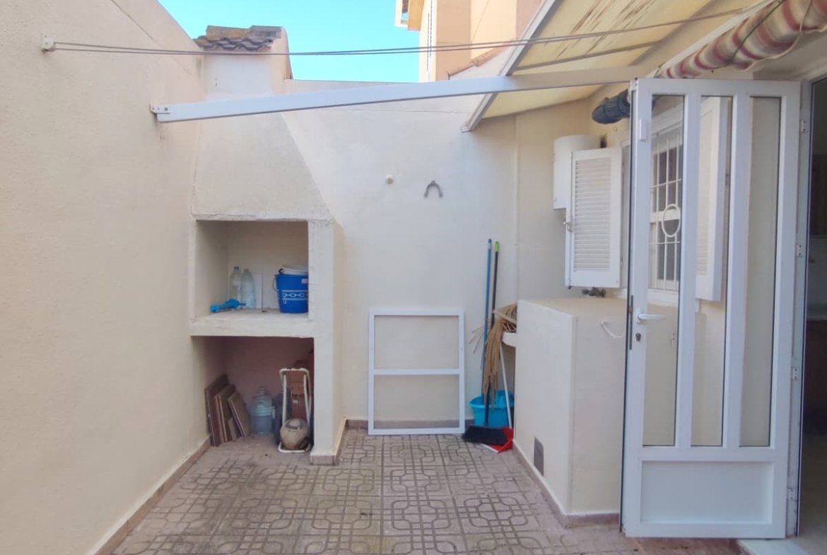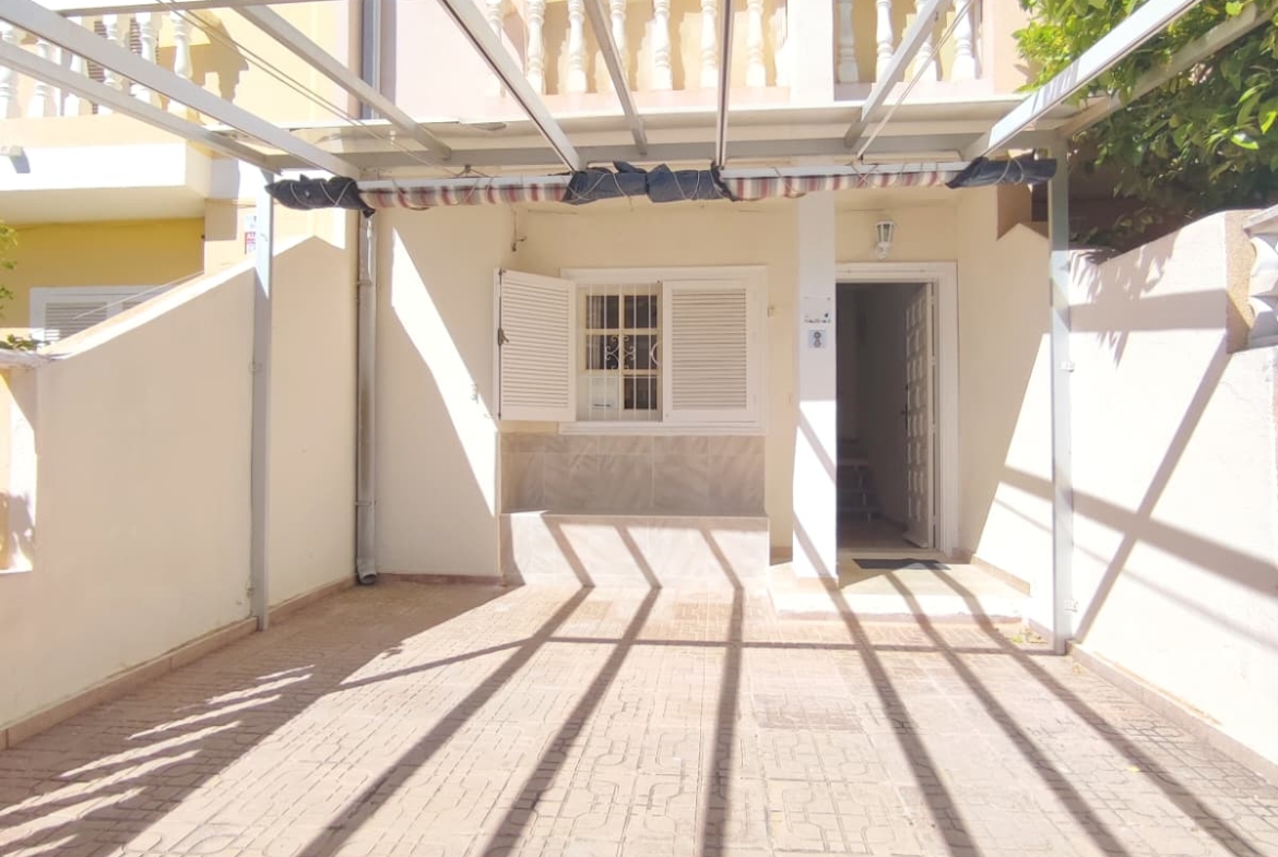 We are delighted to offer this Semi detached property in a very popular area of Lo Pagan * The property offers a large gated front terrace * South Facing * With space enough for a swimming pool * The Terrace offers an awning to create much needed shade in the hot summer months * The property offers a large living room/ Dining area 8 Good size kitchen that leads to another rear patio area with awning * Store Room and BBQ area plus a downstairs toilet and wash area * On the fist floor you have 2 double bedrooms one with Balcony and also offers a good size family bathroom * Great Location * Close to many amenities * and only 10 minutes walk to the local beach and marina * For further details contact Concierge *