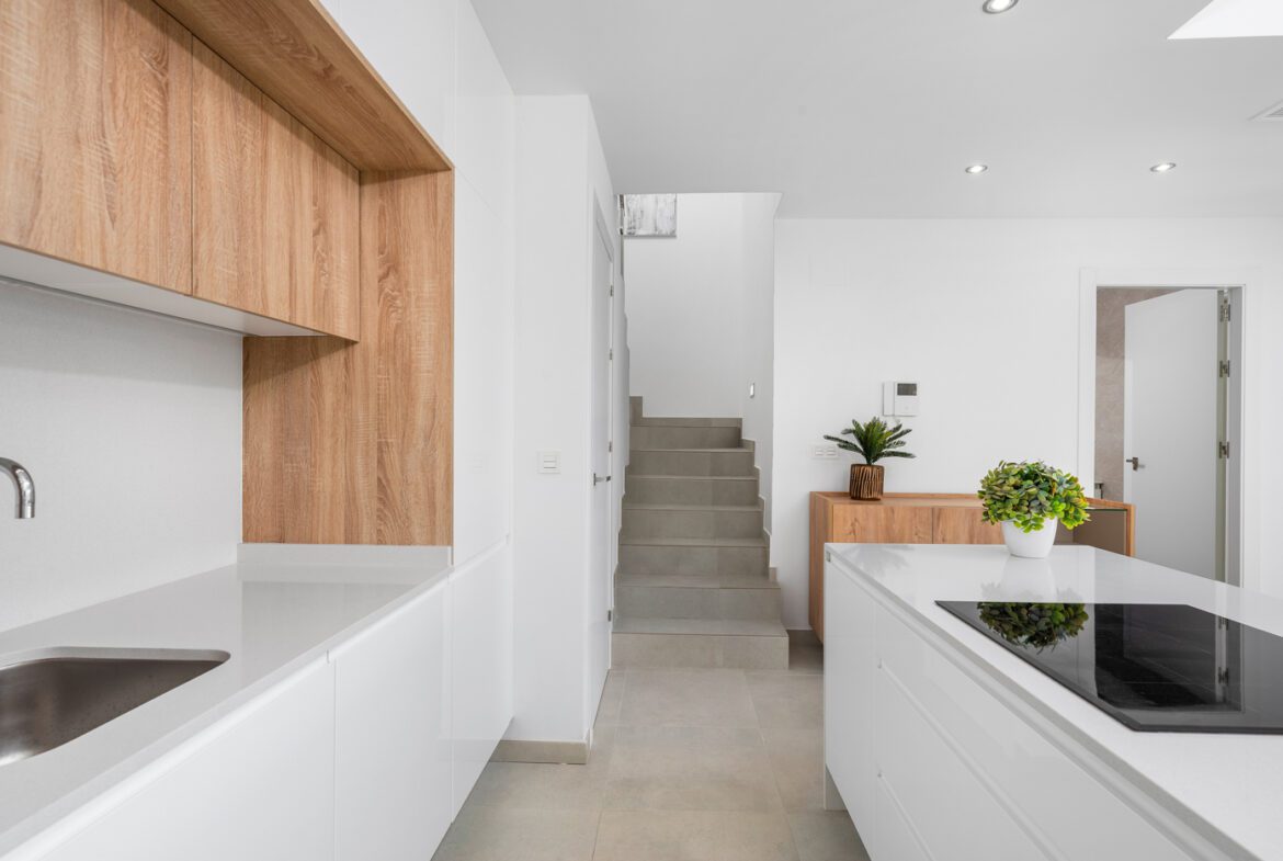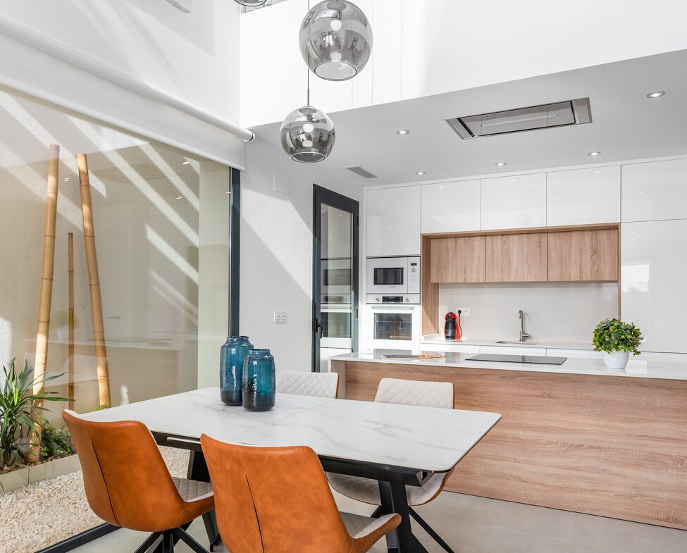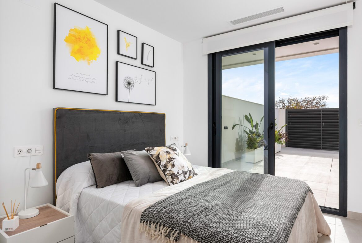 The Residencial Venecia is located at the entrance of the town of Benijófar, Its excellent location makes the residential a claim for customers who value the geographical situation of their homes without giving up the facilities granted by residing in the heart of the city. The residential consists of 11 modern style villas on private plots with terrace, parking area and private pool. The houses consist of living room, open kitchen, 3 bedrooms, 2 bathrooms and a double height for a reading area / office with great views. All of them have the option of a solarium, although only 5 of them have a basement. Carefully designed with high quality materials to meet the needs of the most demanding customers. Only 4 Remaining Prices from 319,900€ to 339,900€